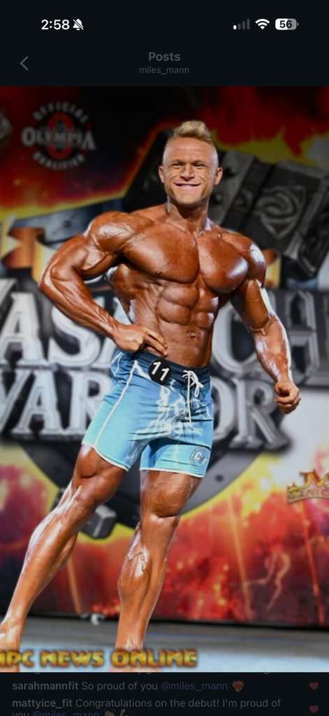 In 2023, Miles earned his IFBB Pro card, winning overall at NPC Universe and is now actively pursuing qualification for the Olympia.